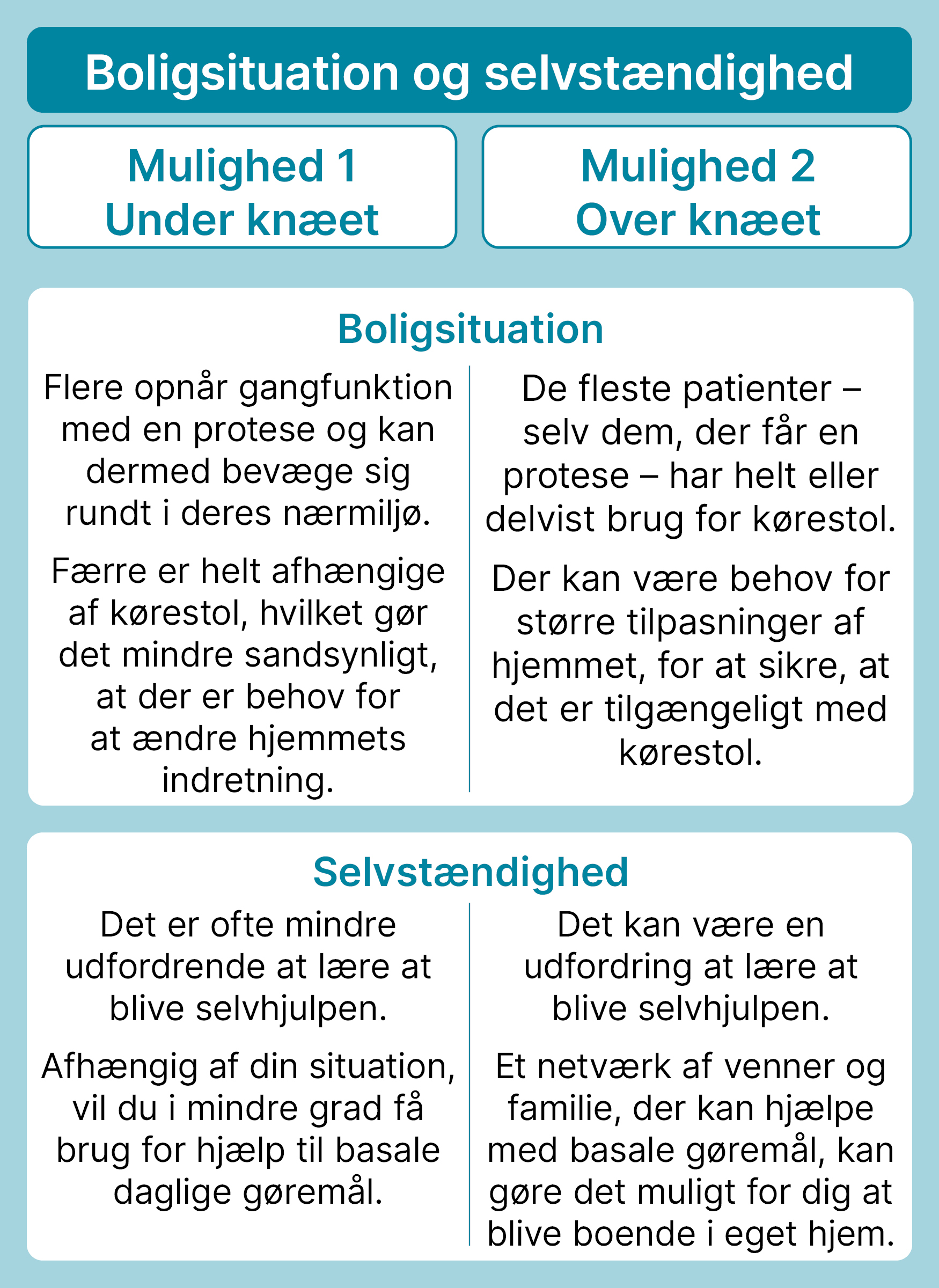 Der er mange faktorer, som kan påvirke din grad af selvstændighed og din boligsituation efter en amputation.
